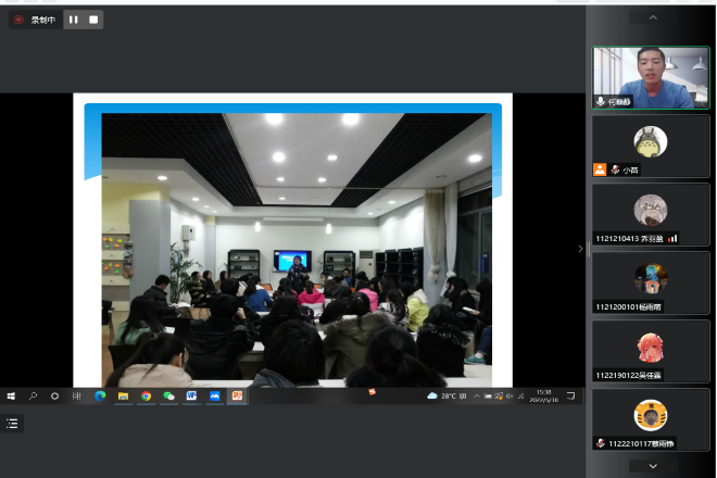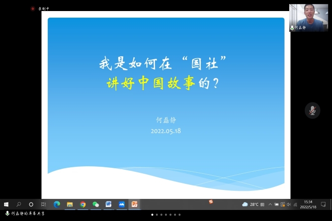 2011级、现供职于中央媒体新华社的何磊静为大家线上分享,会议由英语系副主任杨昊老师主持。