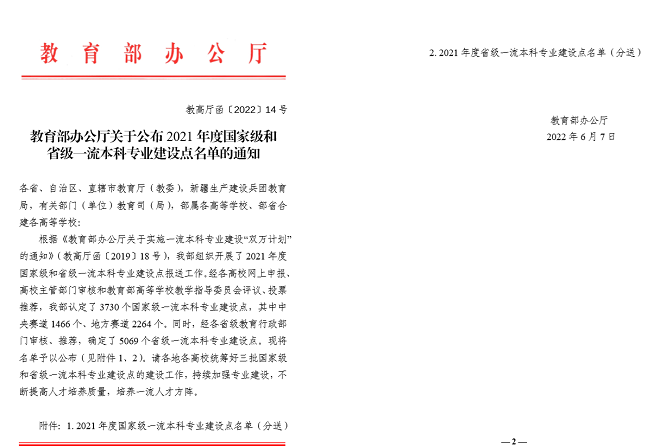 经各高校网上申报、高校主管部门审核和教育部高等学校教学指导委员会评议、投票,近日,教育部办公厅公布了2021年度国家级和省级一流本科专业建设点名单,一品探花