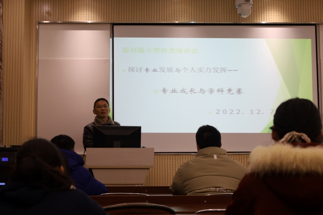日语系副主任管纪龙老师参与主讲,分享主题:专业成长与学科竞赛,会议持续近一个小时。此次圆桌会采用小型沙龙的形式,会议在学院一楼A115会议室举行。