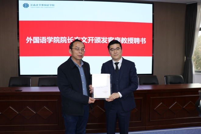 学院院长方文开为葛俊君颁发客座教授聘书