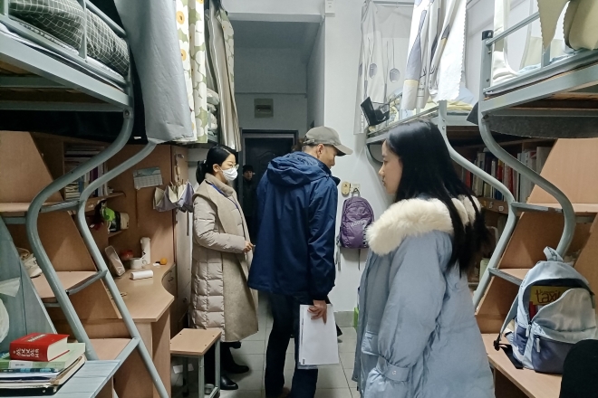 辅导员检查学生宿舍