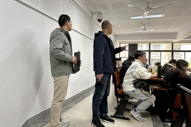 学院领导老师对学生上课出勤情况及听课状态进行了检查,通过核实课堂出勤人数,检查课堂纪律,与任课老师沟通交流等途径,全面掌握学生的学习情况。课间休息时间,辅导员再次嘱咐学生要按时到达课堂,遵守课堂纪律,提高听课效率,共同营造良好的学习氛围。在学院自习室,学院党委副书记提醒大家用电安全,注意开窗通风,在和备考学生交流中,鼓励大家树立信心,劳逸结合。