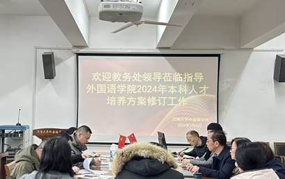 会上,方文开院长基于前期广泛调研的成果,围绕修订工作的核心内容进行报告,强调了利用长三角经济发达地区资源优势,突出学校人才培养特色,积极应对科技挑战,着力英语专业、日语专业和大学英语公共基础课的特色发展。顾琦一副院长针对学科布局和专业发展汇报了具体设想,介绍了基于国家政策、学校特色和学生需求的专业方案和大学英语课程体系与修读模式方案。参会人员针对修订工作中遇到的疑惑和困难进行了深入交流和研讨。教务处李兆丰处长强调了本科人才培养方案修订工作的重要性,提出跨学科和跨学院课程设置的规划和选课方案,鼓励教学改革与教学创新,强调课程质量的“两性一度”要求,同时充分肯定了一品探花