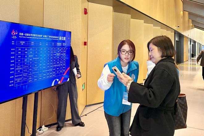 的学生,我非常荣幸能够参与到这样一场国际会议中来。”志愿者李心语表示,“当语言不再是课堂和书本上的知识,而成为打破文化交流隔阂的工具,我想这就是我们作为新时代外语人的使命。”