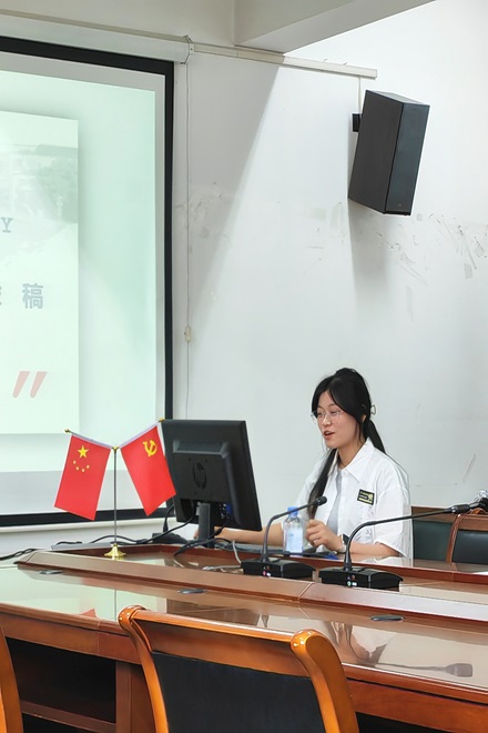 首先,研三的张羽洁同学向大家介绍了她撰写毕业论文的心得体会。她详细介绍了整个毕业论文撰写的时间规划,给研一同学们厘清了整个论文写作的时间顺序,再从选题建议、工具使用和论文结构三方面分享了自己的经验,给研二的同学许多一针见血的建议。