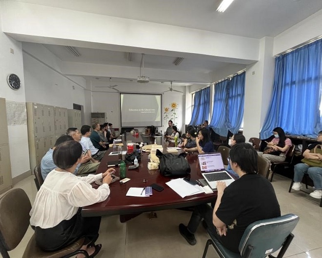 “英语系教研共同体”系列讲座第五场,在文科楼B307成功举办。该讲座是系列讲座中首场由外籍教师主讲,中外教师围绕“新文科”背景下“课程设置”、“专业培养”、“案例研究”等展开热烈探讨。