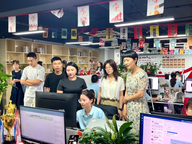 党委书记李荣华、党委副书记刘伯贤、辅导员苗文建、朱家烨以及研究生、本科生代表前往无锡妮茜雅电子商务有限公司开展访企拓岗促就业专项活动。