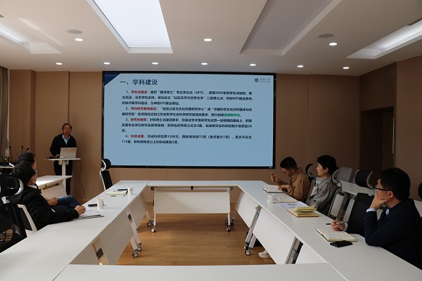 、困难困境、未来规划三个方面作汇报,围绕学科建设、大外改革、师资队伍、科学研究、人才培养等重点展开阐述,并汇报了发展思路。与会其他领导分别围绕科研管理和学生工作等方面进行了汇报。