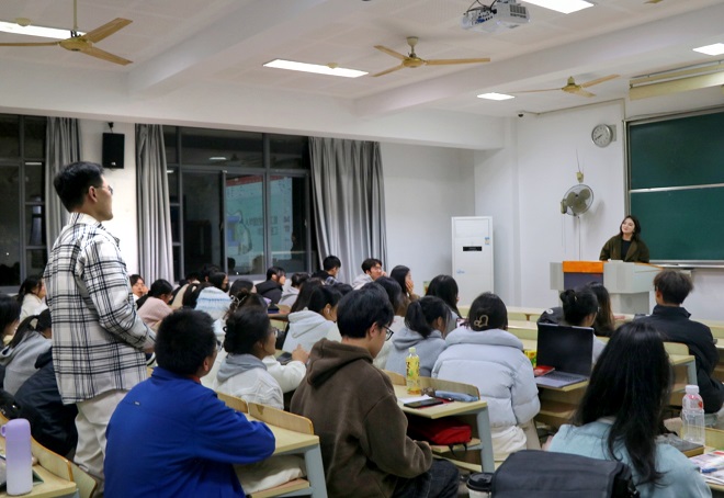 之后姜娜同学分享了她的求职经验与工作经历。她以同龄人的视角,用幽默风趣、简洁明了的语言讲述了自己的成长故事。从求职到入职,她分享了在职业道路上所经历的挑战与收获,她真诚的分享深深感染了现场的同学们。