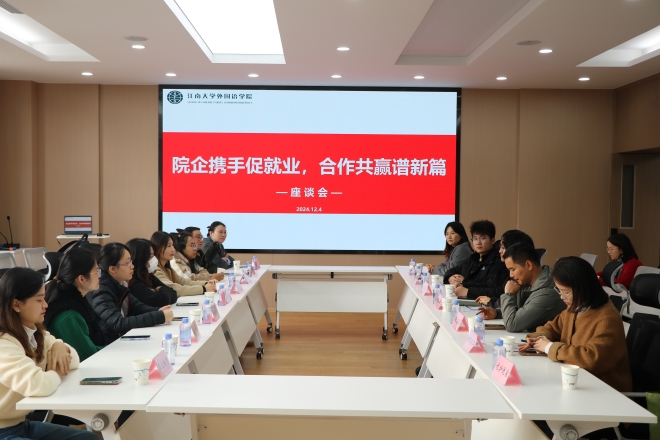 在A349会议室开展院企合作交流座谈会。江苏国泰华盛实业有限公司、弘元绿色能源股份有限公司、无锡金丽洁国际贸易有限公司等十余家企业来访交流,一品探花