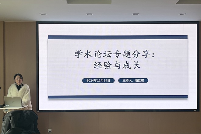 于12月24日在文科楼A349举办了“研途奋进”系列活动之“学术论坛专题分享——经验与成长”。本次活动由潘佳琪同学主持,活动聚焦研究生参加学术论坛的经验分享,旨在帮助同学们更好地了解学术论坛的参与方式及如何通过参与学术论坛提升学术能力。