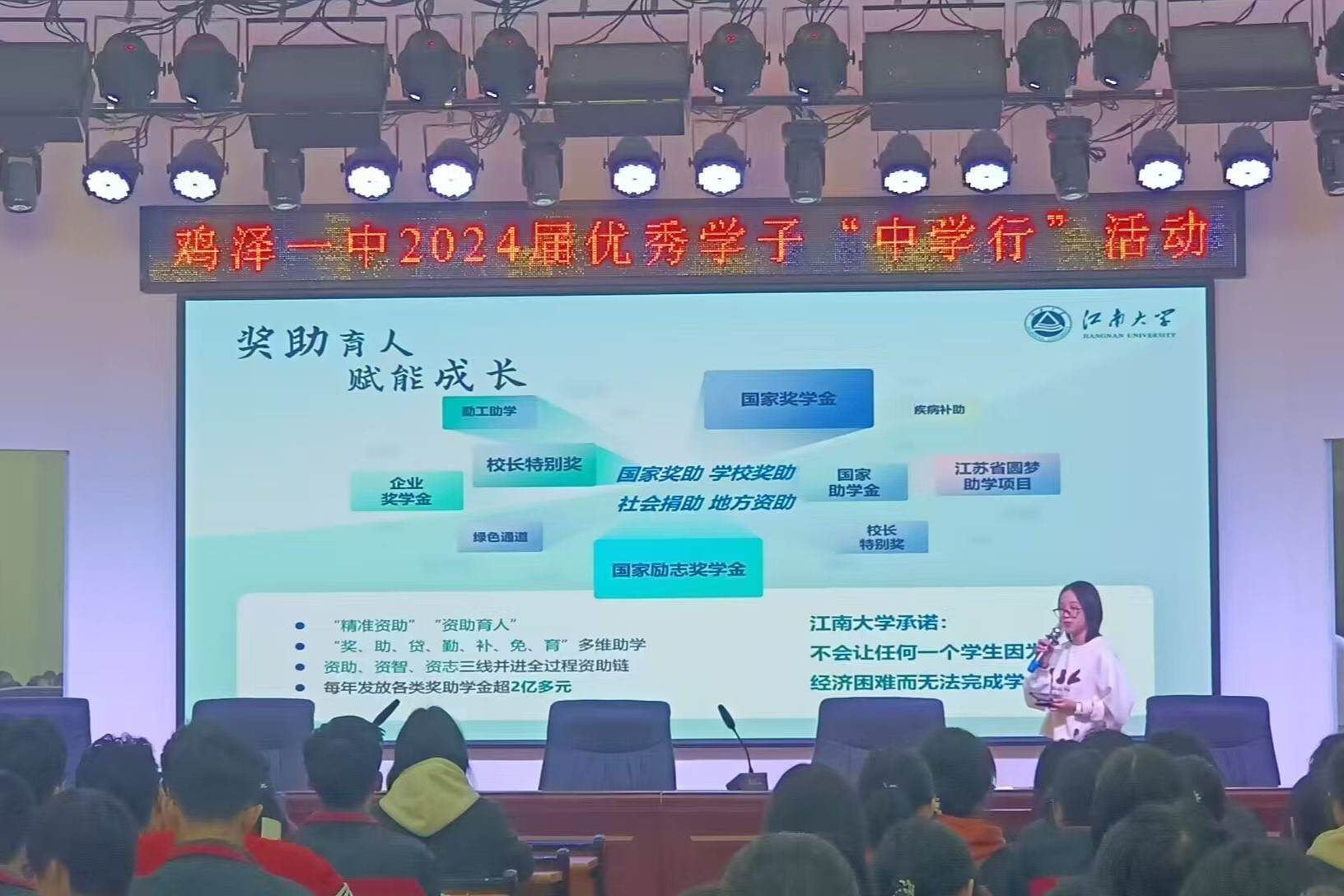 资助政策走进校园”为主题,在母校报告厅为高一、高三年级的学生带来了两场风格不同的宣讲。面向高三学子,宣讲内容简明扼要,为即将面临高考的他们提供了有力的信息支持;面向高一学子,宣讲内容则充满趣味,以生动的方式让同学们提前了解大学的资助政策,感受一品探花