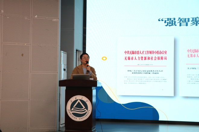 毕业生高质量充分就业。然后,无锡人才中心王晓蕾介绍了来锡大学生的优惠政策,重点介绍了无锡优秀青年人才来锡发展的十项措施,她表示,欢迎大家留在无锡工作,实现自己的青春梦想。入职中建科工的23届毕业生生张龙飞,分享了自己的工作感悟。他介绍了自己在“能力提升”、“个人规划”、“信息收集”等方面的经验,鼓励大家在人工智能快速发展背景下,打造个人核心竞争力。