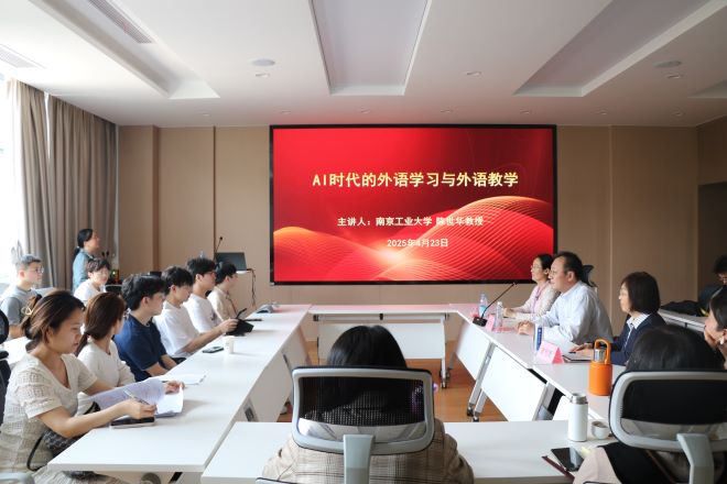 承办的“江南讲坛”第一百二十一讲于2025年4月23日下午在文科楼锦州厅举行。南京工业大学外国语言文学学院院长,扬州大学博士生导师,陈世华教授应邀做了《AI赋能时代的外语学习与外语教学》的主题讲座。一品探花