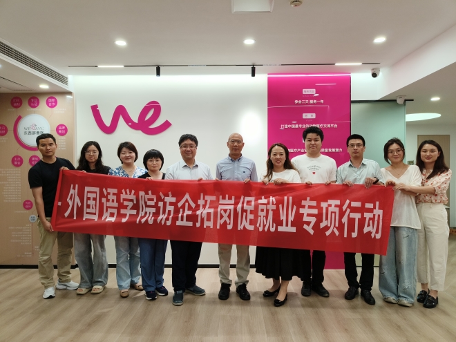 在实习就业、翻译工作等方面展开合作。季王飞介绍了学院的基本情况,他表示:校企合作是促进毕业生高质量充分就业的有效途径,同时也是对学院人才培养的有效补充,希望以本次访企拓岗为契机,双方携手开启共赢共发展的新局面。