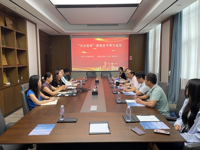 在实习就业、人才培养等方面展开合作。方文开介绍了学院的师资力量、学科建设、人才培养等基本情况,他表示,学院人才培养离不开企业的支持,希望以本次访企拓岗为契机,双方携手开启共赢共发展的新局面。季王飞介绍了学院2025届毕业生就业情况,欧小娟介绍了公司海外业务发展情况。在交流环节,大家围绕“实习工作”、“招聘要求”、“人才培养”等方面积极发言。