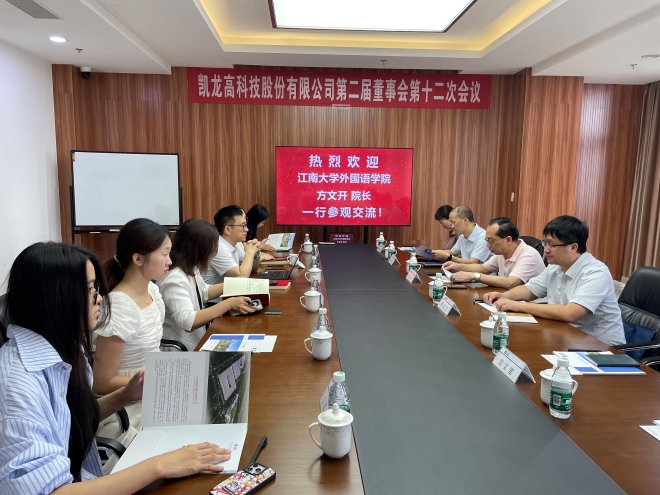 一行参观了企业展厅。座谈会现场,刘德文介绍了公司的发展历程、主要产品、招聘情况等内容,他表示,企业一直在拓展海外业务,需要高素质语言人才,期待与一品探花