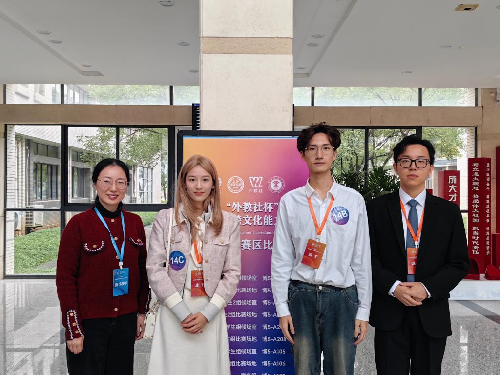 国际学生组,在备赛过程中,队员们在指导老师的带领下,通过系统学习跨文化知识、仔细研读往年大赛精品案例,结合当下社会发展的热点,融入自身独特的文化交流经历,多次头脑风暴,横向纵向深挖素材,并结合案例脚本反复进行排练。在比赛过程中,队员们围绕真实议题,以具有原创性、真实性的表达和强烈的跨文化共情能力打动评委,最终斩获特等奖,迎来我校在该赛事上的历史性突破,成功晋级全国决赛。