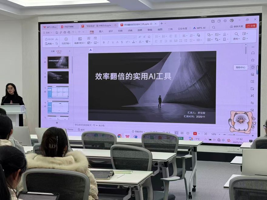 活动还邀请了数据库讲师刘俊,开展了题为“科研工具与方法革新:助力提升学术研究效率”的专题讲座。刘老师详细介绍了数据库的功能与使用技巧,包括文献检索与筛选、最新研究动态追踪、期刊分析与投稿指导等,为同学们的学术研究提供了强有力的工具支持。
