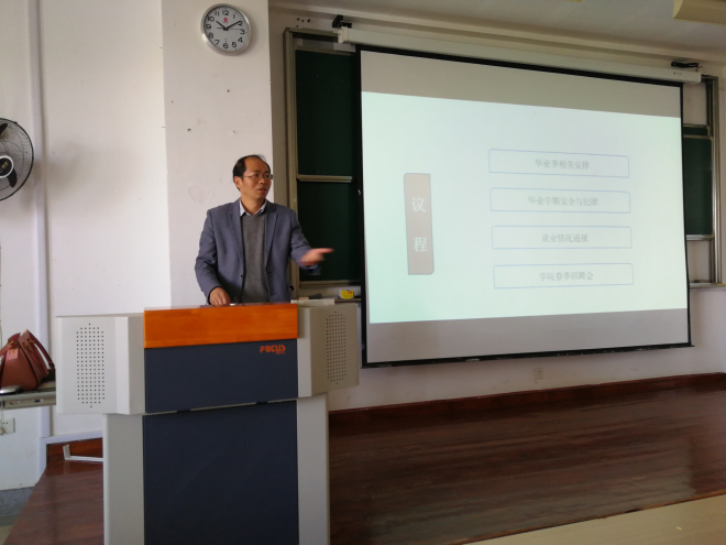 2018届毕业生就业形势通报会在2D306召开。学院党委副书记、教学副院长、年级辅导员和毕业班全体同学参加会议。