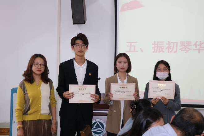 吴艳敏老师对六个答辩团支部进行了点评。她对用心准备、答辩条理清晰的六个团支部表示肯定,并就如何打造一个优秀的团支部提出建议,鼓励各团支部不断奋进,砥砺前行。接着,由主持人宣布评比结果,吴艳敏老师,陆芳老师,顾海星老师分别为获奖的团支部颁发获奖证书。