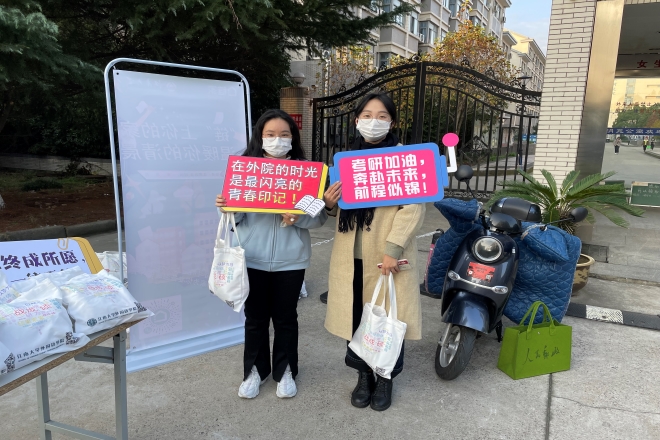 学院党委副书记刘伯贤、关工委常务副主任鲍国庆送上考研加油包